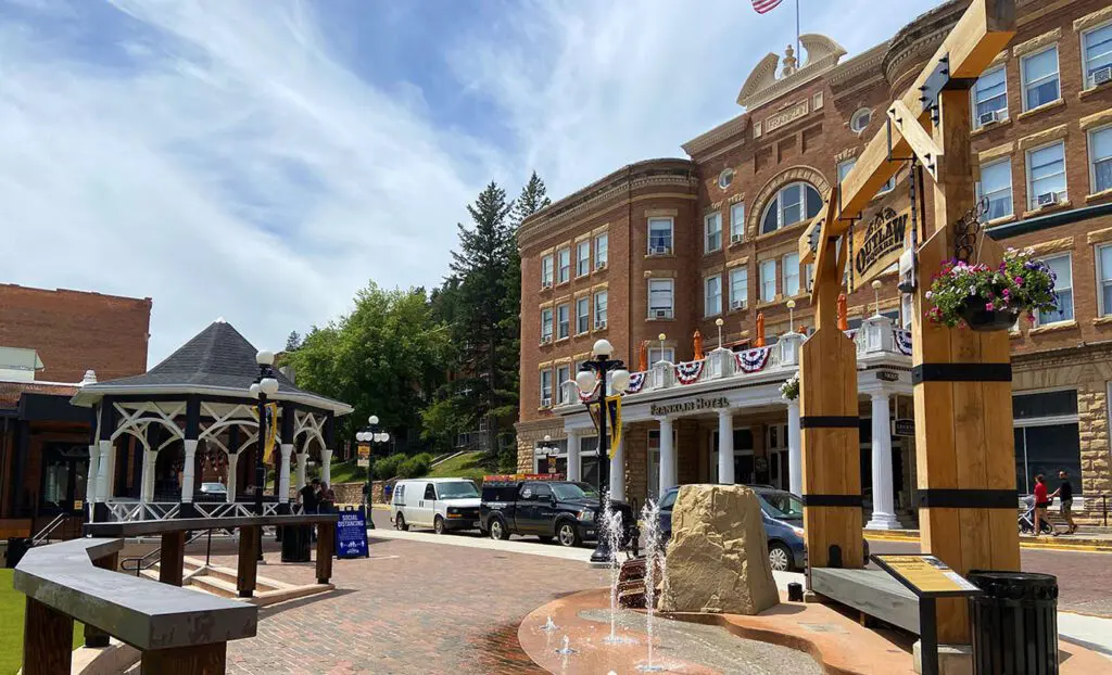 The City of Deadwood has built a new town square to bolster its entertainment venues and give families more activity options while visiting the historic City. The Square features a large stage built with heavy timbers to handle major acts. Fronting Main Street is a historic-replica gazebo that is an architectural recreation of the original meeting place for townspeople. A water feature utilizes an 1890’s spigot and the Main Street entrance is framed by gallows poles. A 4,000sf engineered synthetic Ice, Glice®,skating rink can be used during any season. When the skating rink is not in use, visitors can gather on a synthetic turf lawn to relax and enjoy entertainment. 12,205 Reclaimed pavers from Deadwood Street were used as hardscape and a Historic Opera House stacked stone foundation wall was preserved for display.