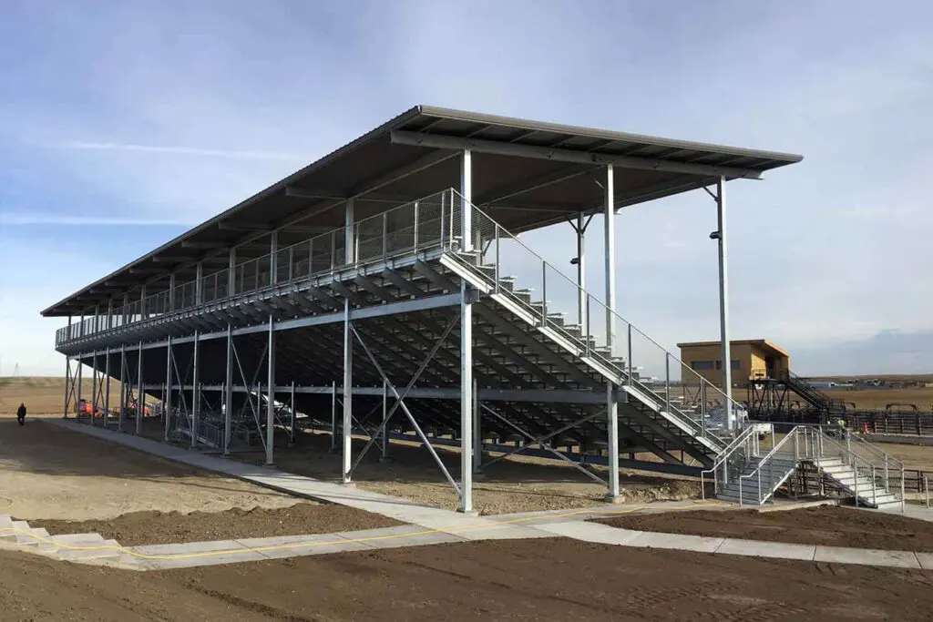 When a new complex was needed for Stark County’s signature event, The Roughrider Days Fair, Rodeo and Expo, Scull Construction was called in to make it happen. What resulted was the Stark County Fairgrounds, an outdoor event center that provides a new rodeo stadium, fairgrounds, and large outdoor space with a steel grandstand that can seat 2,500 people for concerts, rodeos, and other various outdoor events. A 2,240 square foot concessions building was built to accommodate food service and house the restrooms, along with a sturdy and modern press box that features great views of the arena. Adjacent to the facilities, we poured 96,000 square feet of pavement to support parking, vending, attractions, and other events.